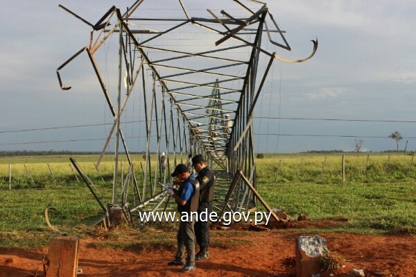 Que, alrededor del mediodía de hoy sábado 5 de julio de 2014, dos torres de alta tensión de 220 mil voltios correspondientes a la línea de transmisión San Estanislao- Horqueta fueron derribadas como consecuencia de la explosión intencional que afectaron las fundaciones de las estructuras y provocaron la posterior caída de las torres mencionadas. El evento afectó a más 90 mil clientes de los departamentos de Concepción, San Pedro, Amambay y parte del Chaco.