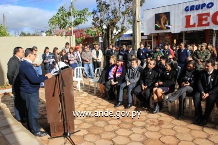 El acto contó con las participaciones de los responsables de la ANDE zona Norte, entre ellos el Ing. Arnaldo Paiva, Ing. Gustavo Etcheverry, jefes de División de las áreas de Distribución y Comercial, respectivamente, los encargados y funcionarios de la sede Capitán Bado, así como del Gobernador del Dpto. de Amambay, Don Pedro González, del Intendente Municipal de Capitán Bado, Don Ranfis Roberto González e invitados especiales. La bendición de la obra estuvo a cargo del Presbítero Eustaquio Agustí, de la Parroquia San José, de la mencionada ciudad.