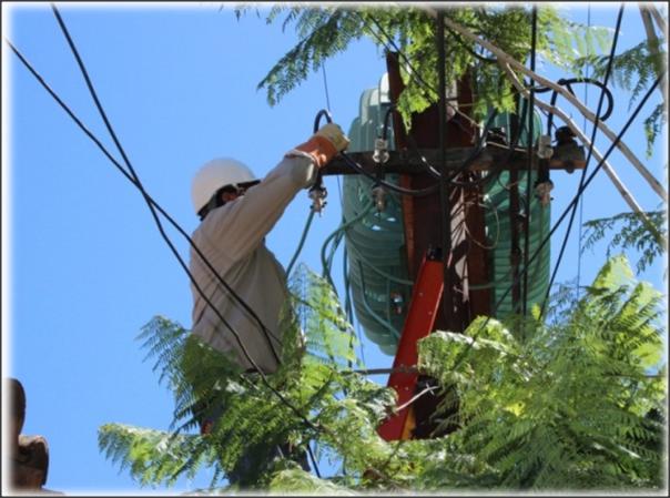 Por otro lado, cuadrillas de técnicos se encuentran sustituyendo postes de palma por los de hormigón armado en la zona céntrica y lugares aledaños a la ciudad; en total se prevén 38 unidades; también se realizan podas de árboles que obstaculizan las redes de distribución y se prevé para la próxima semana levantamiento termográfico para eliminación de puntos calientes a cargo de la sección de Líneas Vivas del Departamento de Mantenimiento de Líneas de Distribución.