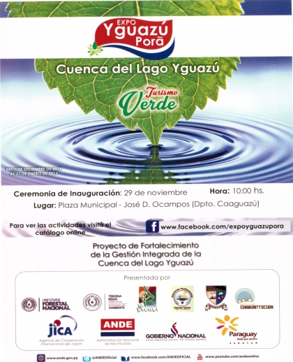 Al lanzamiento de la Expo Yguazú Porá, organizada por la Multisectorial Represa Yguazú, con el apoyo de ANDE y JICA, a llevarse a cabo el sábado 29 de noviembre de 2014 a las 08:00 horas en la Plaza Municipal de José Domingo Ocampos, departamento de Caaguazú. El evento contará con la presencia de autoridades del Gobierno Central, departamentales y municipales, así como de representantes de las siguientes instituciones: ANDE, Multisectorial Represa Yguazú, Agencia de Cooperación Internacional del Gobierno del Japón (JICA), Instituto Forestal Nacional (INFONA), Secretaría del Medio Ambiente (SEAM), Secretaría Nacional de Turismo, entre otras.