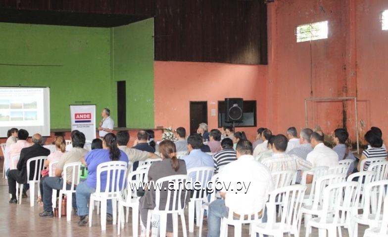 La Audiencia Pública fue realizada en el salón auditorio de la Municipalidad de Itacurubí de la Cordillera y contó con la presencia de representantes de la SEAM, representantes de la ANDE, del Intendente de Itacurubí de la Cordillera, el señor Hugo Meza, y de personas interesadas en conocer el Proyecto.