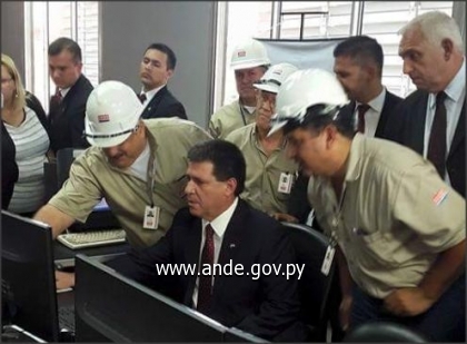 Culminado los actos de inauguración de las obras de ampliación, el Presidente Horacio Cartes y el presidente interino de la ANDE, Ing. Walter Causarano, realizaron un recorrido por las instalaciones de la Subestación Encarnación.