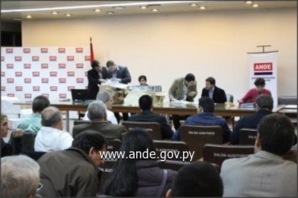 Tras finalizar el cierre de la presentación de Ofertas, se elaboró un ACTA que fue suscrita por la representante de Auditoría Interna de ANDE Lic. Ermelinda Fernández, Sixto Gabriel Pereira y el Lic. José González por el Dpto. de Licitaciones y los representantes de las empresas oferentes.
