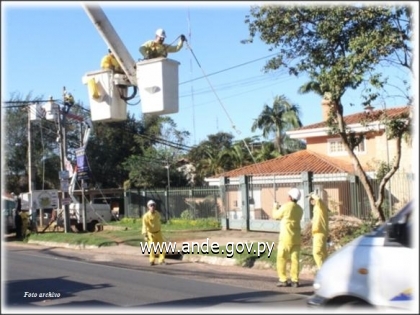 La Administración Nacional de Electricidad (ANDE), continúa con los trabajos de mantenimiento, adecuaciones en el sistema de distribución eléctrica en Media y Baja Tensióny puestas en servicio de nuevos alimentadores en varias zonas de la capital y el área metropolitana, en el marco del Plan Verano 2015/2016.