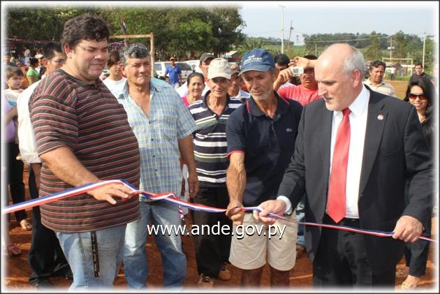La inauguración de las obras contó con la presencia del Presidente de la ANDE, Ing. Víctor Romero Solís, acompañado de los jefes de la Gerencia Comercial y la Dirección de Distribución. Las obras que benefician a un total de 240 familias que ingresan como nuevos clientes al proceso comercial de la ANDE, se ejecutaron con una inversión de G. 769.244.256, que fueron financiados con recursos genuinos de la Institución.
