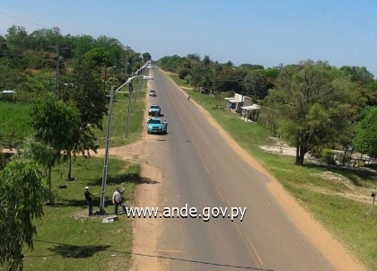 Por otro lado, en el Municipio de Puerto Antequera se realizaron obras para la iluminación de 800 metros en la entrada a la ciudad, con el montaje de 24 artefactos de Alumbrado Público de 400 W cada uno, la colocación de 23 postes de Hormigón Armado, la extensión de 740 m. de conductores pre ensamblados y el montaje de un nuevo Puesto de Distribución de 25 kVA, con una inversión de Gs. 24.467.324.