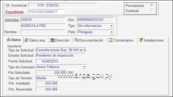 En el trascurso de la mañana de ayer, 16 de setiembre, el representante del Club presentó todas las documentaciones correspondientes a la consulta previa, cuyo trámite ha sido iniciado en fecha 14/09/15, para la instalación del Transformador de uso exclusivo de 250 kVA, según Expediente P31312015090017, argumentando que la falta cometida con la conexión irregular y el incumplimiento de los procedimientos de la ANDE fue a consecuencia de varios problemas presentados durante la ejecución del proyecto.