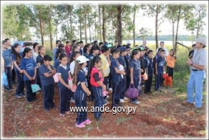 La actividad se realizó el 7 de octubre, en un predio propiedad de la ANDE, adyacente al Lago Yguazú, ubicado a 7 km de la Ruta Internacional N° 7 en el distrito de Yguazú y participaron 125 alumnos del 4°, 5° y 6° grado y Nivelación de los turnos mañana y tarde, quienes vinieron acompañados de docentes y directivos de la institución educativa. Cada estudiante tuvo la oportunidad de plantar una de las 7 especies nativas y “bautizar” con su nombre el futuro árbol que crecerá en las inmediaciones del lago, concienciados de la importancia de la preservación del medio ambiente y la conservación de cuencas hidrográficas en su hábitat.