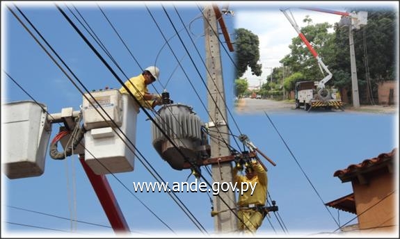 La Administración Nacional de Electricidad (ANDE) continua con los trabajos de montaje y mantenimiento de Puestos de Distribución, ampliación de Líneas en Media Tensión, para el aumento de potencia y mejoramiento del sistema eléctrico de distribución en diferentes ciudades del área Metropolitana.