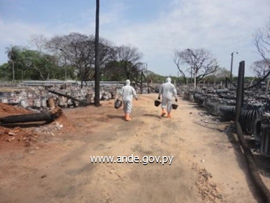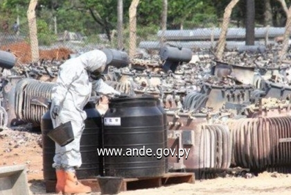 Los trabajos del día del hoy forman parte de las recomendaciones establecidas por la SEAM y fue realizado por personal del Cuerpo de Bomberos Voluntarios del Paraguay (CBVP), dotados con equipos de protección individual, nivel C de protección, exigidos para la manipulación de residuos que pudieran contener PCB, de acuerdo a protocolos establecidos para el efecto y contó con el acompañamiento de la Fiscalía Ambiental y de la Secretaría del Ambiente, respectivamente.