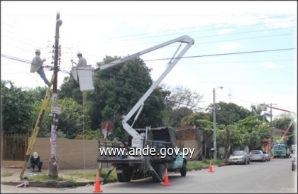 Prosiguiendo con los trabajos de mejoramiento del sistema de distribución eléctrica, la Administración Nacional de Electricidad (ANDE), realizó este fin de semana adecuaciones de estructuras de Media y Baja Tensión y mantenimiento de Puestos de Distribución, para garantizar el suministro de energía eléctrica a los clientes de la zona metropolitana.