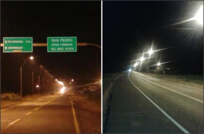 Con el objetivo de apoyar el desarrollo comercial en el departamento de San Pedro, la Administración Nacional de Electricidad ANDE inauguró el pasado 13 de enero del corriente la iluminación de la entrada a la ciudad de San Pedro del Ycuamandiyú.