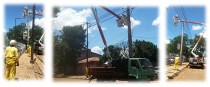 A su vez, en la víspera, domingo 7 del corriente, en los barrios Las Mercedes y La Encarnación de la Capital se llevó a cabo el mantenimiento general y preventivo de los Puestos de Distribución que abastecen de energía eléctrica a las zonas mencionadas. Además se procedió a la ampliación de línea Media Tensión en el barrio Villa Amelia, zona del Hospital de Clínicas de la ciudad de San Lorenzo, con el fin de mejorar la confiabilidad del sistema de distribución.